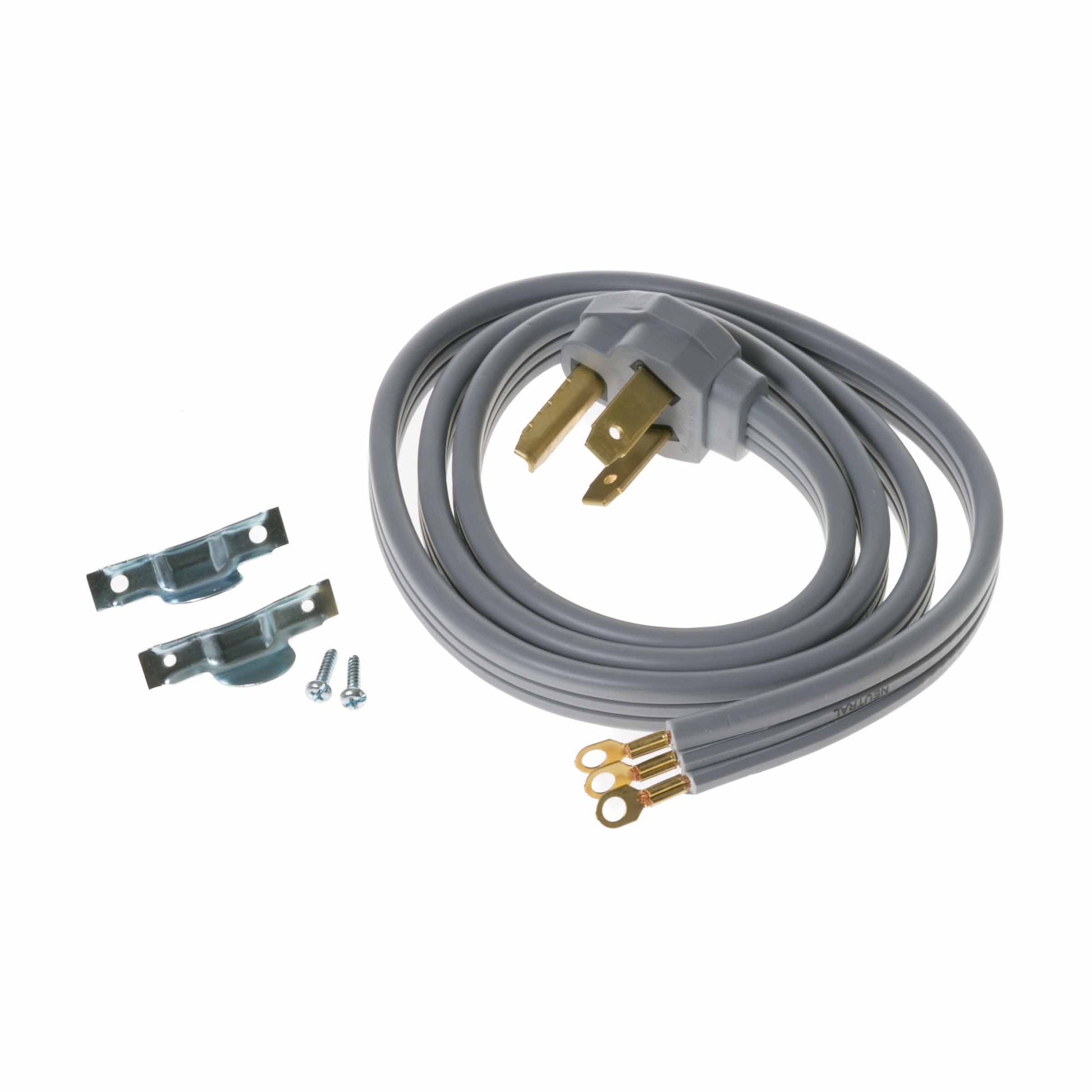 The GE WX09X10003 is a genuine OEM 3-wire dryer cord, built to deliver reliable power to dryers that require a 3-prong connection. It measures 5 feet in length and is rated for 30 amps. The cord includes a molded, right-angle plug that allows it to sit flush against the wall, durable ring terminals for secure connection to the dryer’s terminal block, and a cord clamp to reduce stress on the wiring during installation.